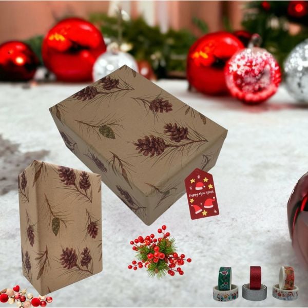 İtalyan Premium Yılbaşı Kozalak Desenli Hediye paketleme kağıdı, özel günlerinizin ve tatil sezonunun büyüleyici bir atmosferde geçmesi için mükemmel bir tercihtir. Bu özel kağıt rulo, yüksek kaliteyi ve zarafeti bir araya getirir.