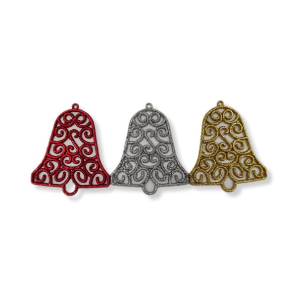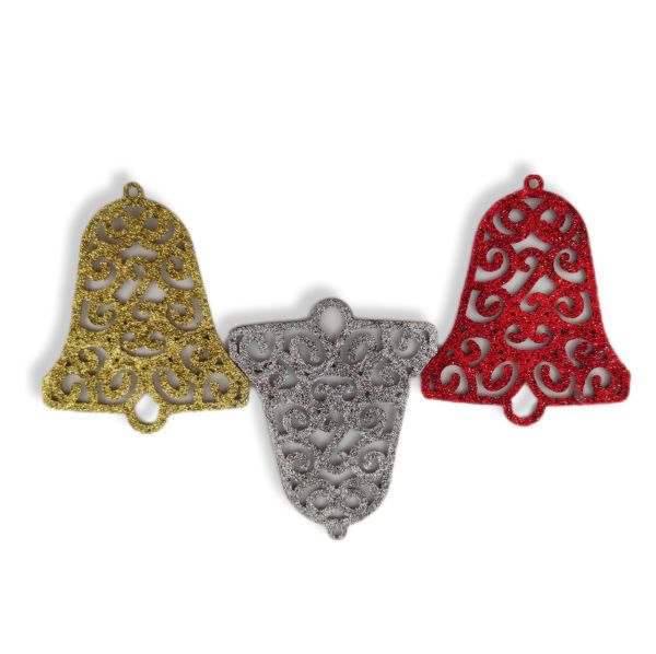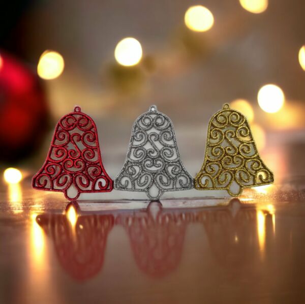 Yeni Yıl Yılbaşı Simli Çan 3 Adet - Kırmızı Gümüş Altın - 9x8 Cm