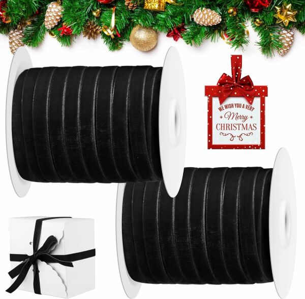 Yeniyıl Yılbaşı Siyah Kadife Kurdele 2 cm 18 metre